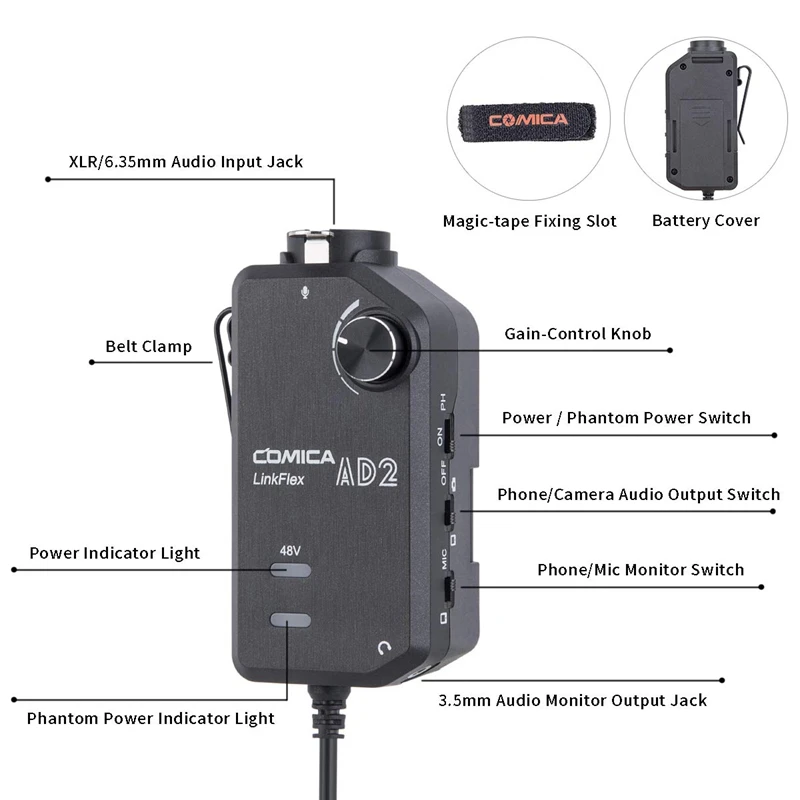 - Product name : Comica LINKFLEX.AD2 XLR/ 6.35mm with 48V Phantom Power Real Time Monitor XLR/Guitar Interface Adap